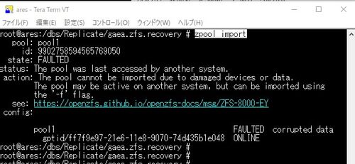 2025年6月にメインファイルサーバーのzfsのプールを飛ばしてしまいましたが、何とかリカバリー(読み出し)をして、少しでもデータを引き上げたいです。 障害発生時点のディスクのバックアップ作りましたので、一時ファイルサーバーに取り付けたレプリケート…