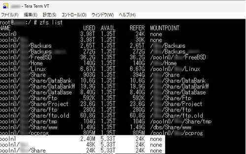 再構築した”データ領域<1>”のzfs/poolのイニシャライズが終わりましたので、”ホーム領域”に退避していたファイルシステム領域の内、”バックアップ用領域”と”ftpサービス用領域”を”データ領域<1>”に移動して、”ホーム領域”の空き容量に余裕を持たせます。【注…