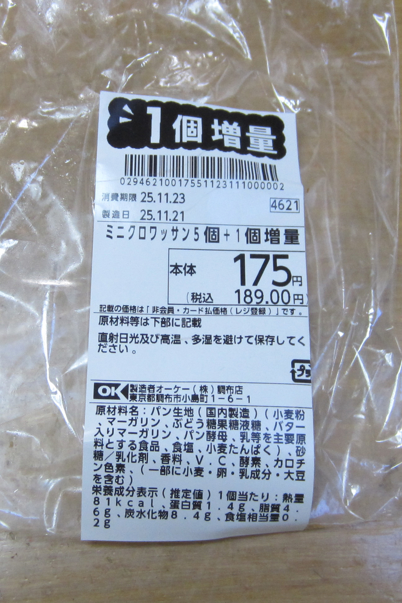 | <2> | オーケー | ミニクロワッサン | 6個 | 27.60g | 1.20g | 486kcal |